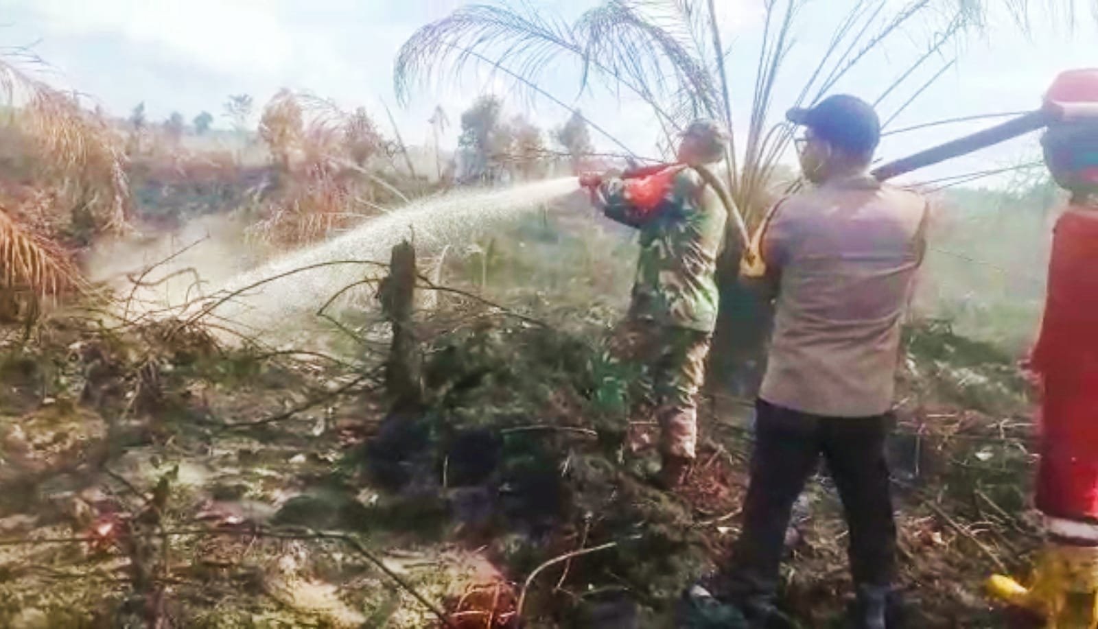 “Hingga sampai saat ini kami masih melakukan pemadaman dan pendinginan. Lahan yang terbakar diperkirakan sudah mencapai lebih kurang 10 hektar, dan lahan yang terbakar berisi tanaman sawit milik warga,” jelas Serma BK. Tumanggor.